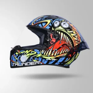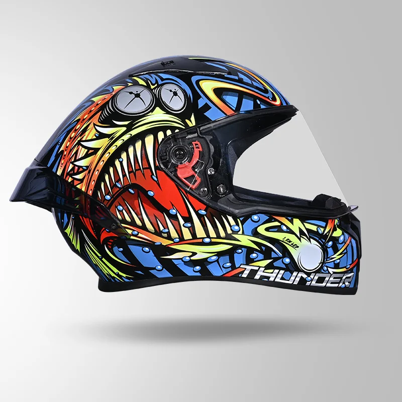 Introducing the Thunder D12 Anglerfish, your ultimate companion for angling adventures. Available in M, L, and XL sizes. Equipped with a free mirror visor with helmet. It’s a smoky black spoiler, screw-fitted for stability, and adds style and functionality. ISI and DOT certifications guarantee top-notch safety, while the dynamic ventilation system keeps you comfortable during long rides.