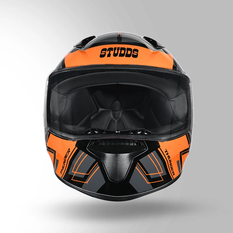 Built for riders who value maximum protection, comfort, and aggressive styling, the STUDDS Thunder D3 Decor Helmet with Spoiler combines advanced safety features with a bold black–orange graphic finish for confident rides every day.