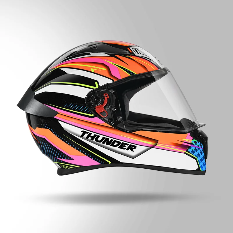 Thunder D8 Decor is a full-face helmet with quick release spoiler and other product features like aerodynamic design, higher impact outer shell with UV resistant paint, regulated density EPS, dynamic ventilation system having air vents at top and chin area with hot air exhausts at the back, hypoallergenic and replaceable liner and quick release chin strap. Thunder D8 Decor with spoiler is available in various sizes and colour options.