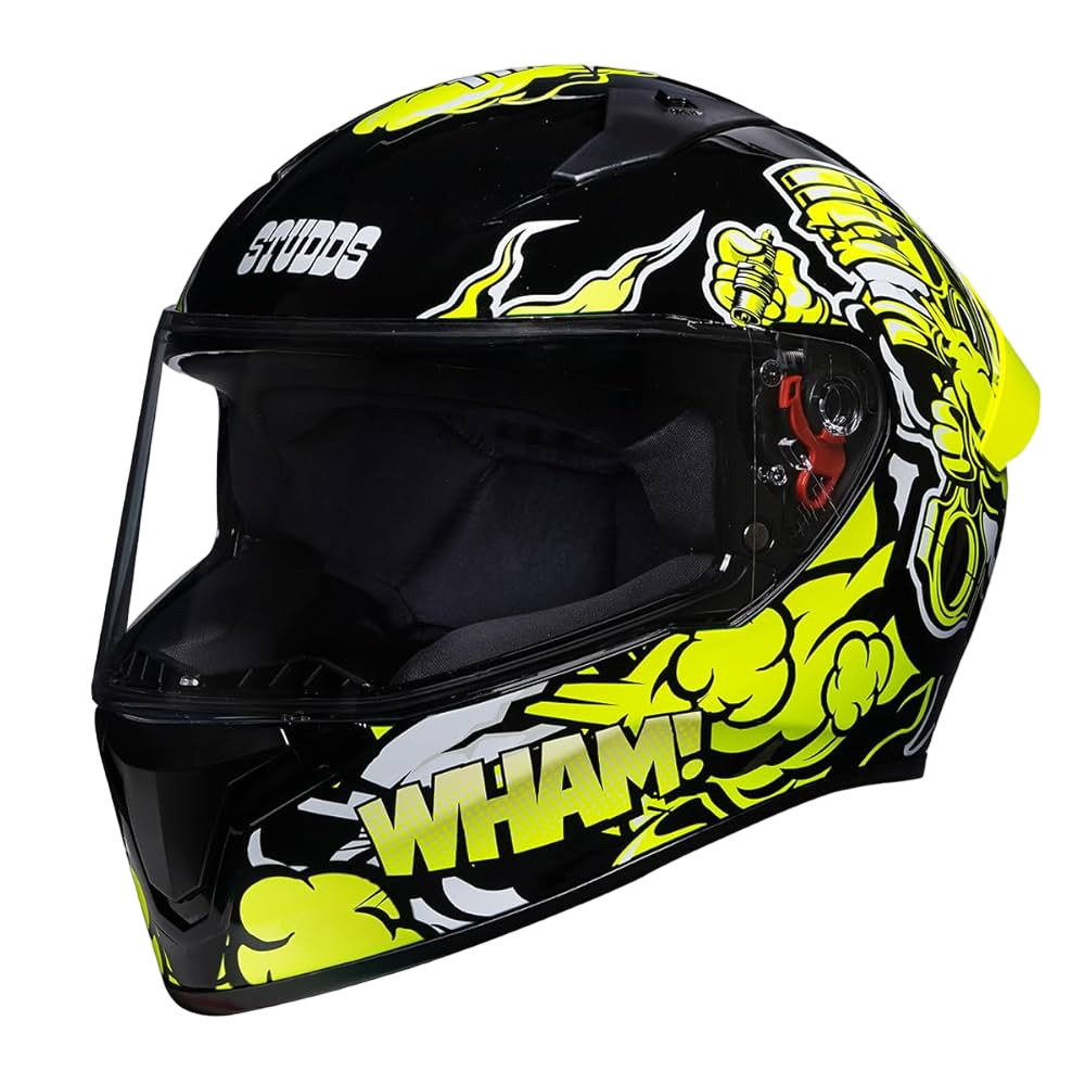 Studds Thunder Piston D10 Decor With Spoiler Black Yellow N5 – Full-Face Riding Helmet