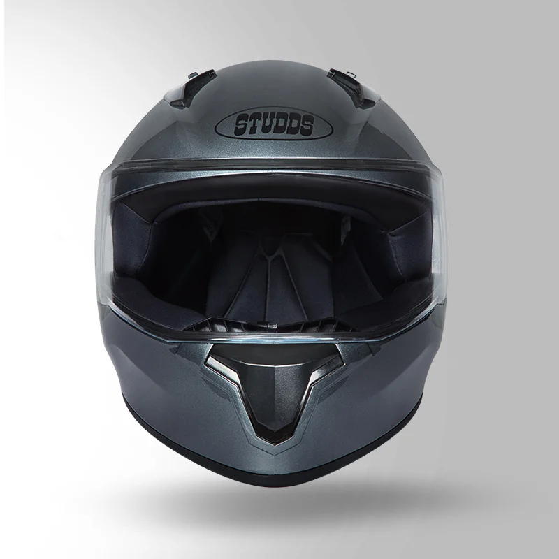 STUDDS Thunder Solid with Spoiler Glossy Gun Grey – High-Impact Full Face Helmet