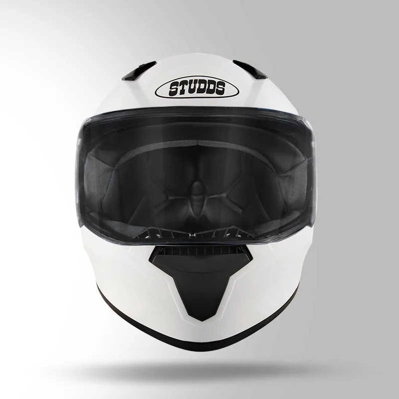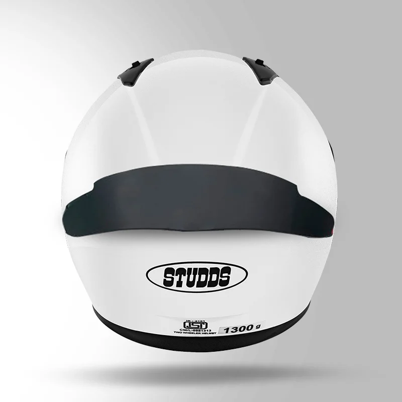 STUDDS Thunder Solid with Spoiler Glossy White – Aerodynamic Full-Face Helmet for Maximum Safety & Comfort