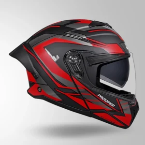 Stylish and safe, the STUDDS Trooper D4 Race Helmet features a flip-up design, dual visors, and dynamic ventilation.