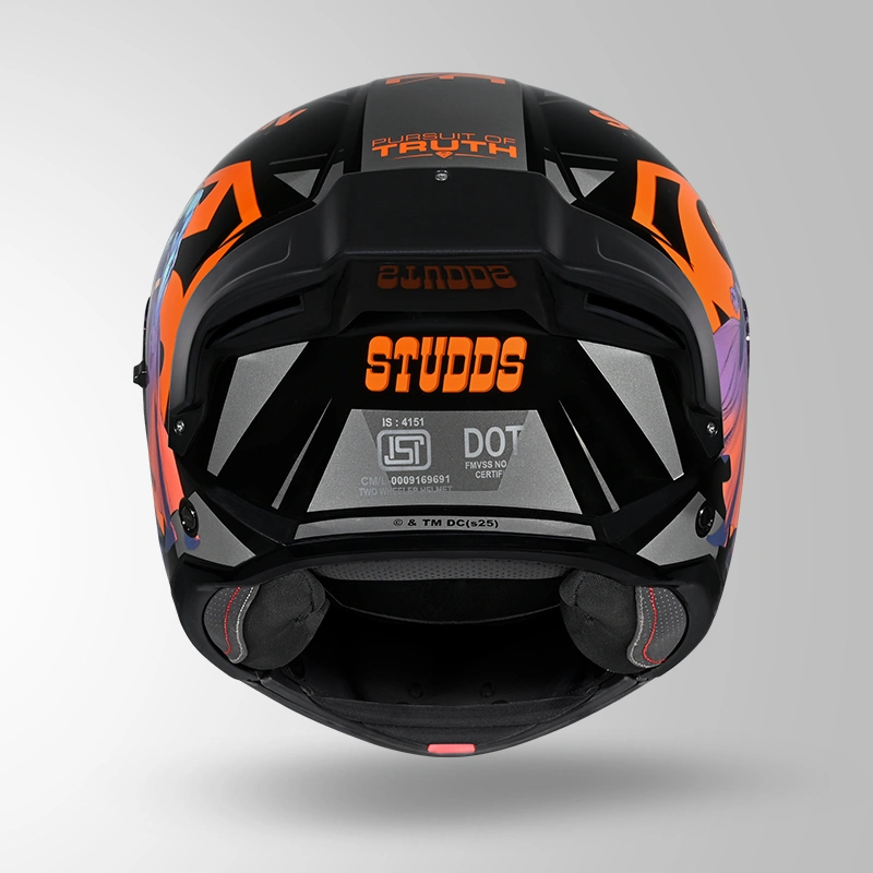 The STUDDS Trooper Superman Edition Helmet Black & Orange offers a perfect combination of safety, comfort, and style. Featuring a high impact resistant shell, scratch-resistant visor, flip-up modular design, and hypoallergenic liner, this helmet is ideal for riders who want dependable protection with bold superhero-inspired graphics.