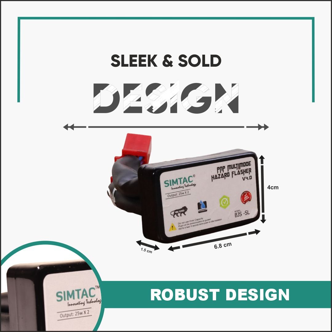 Enhance your road safety and visibility with the Simtac SWITCHLESS [V4.0] Hazard Flasher Module, designed for Bajaj Pulsar AS and NS BS4 models. This plug-and-play module requires no cutting or splicing of wires, making installation quick, safe, and hassle-free. Perfect for highway, mountain, or rainy rides, it ensures maximum visibility in adverse conditions.