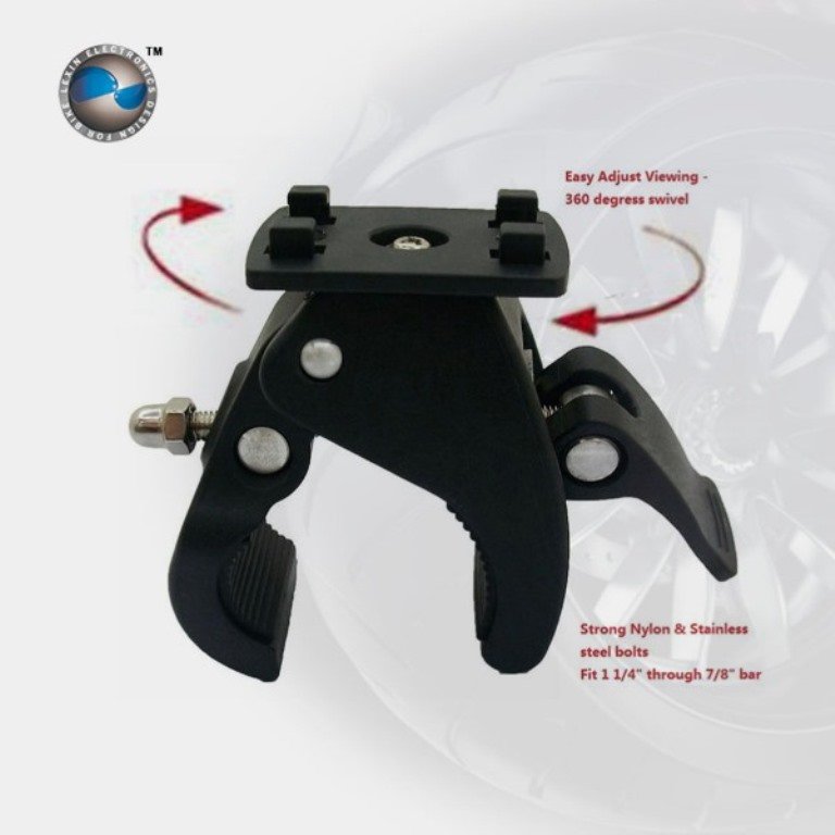 The mount comes with an adjustable system designed to fit most motorcycle and bicycle handlebars.