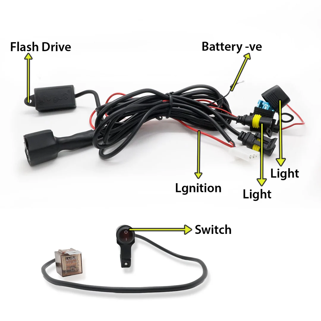 Universal Led Fog Light With Yellow Lens Cover With Wiring Kit Wiring Harness+ Fuse +Switch+ Relay + Strobe Flasher for Two Led Work Fog Light Plug N Play System (40W, 12V-85V, DC,)