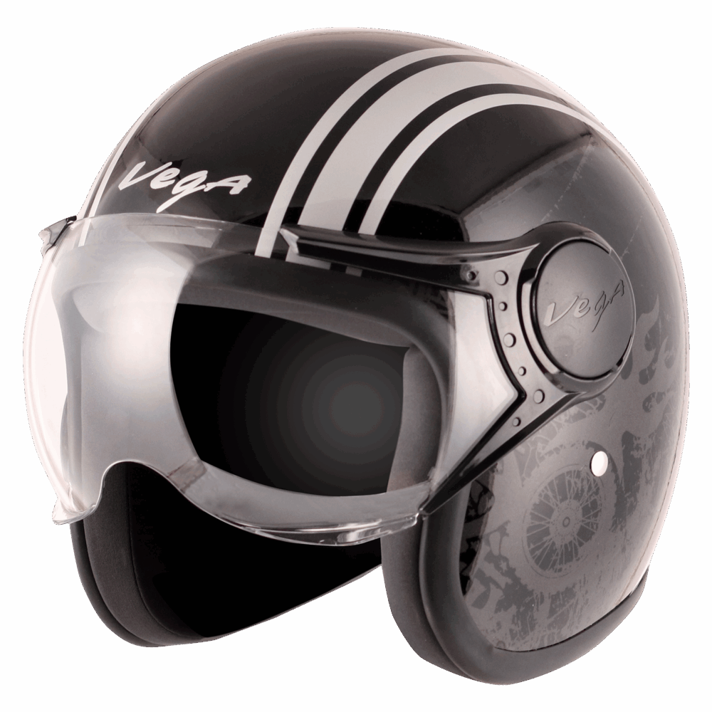 VEGA Jet Old School WVisor Helmet -Black-Silver