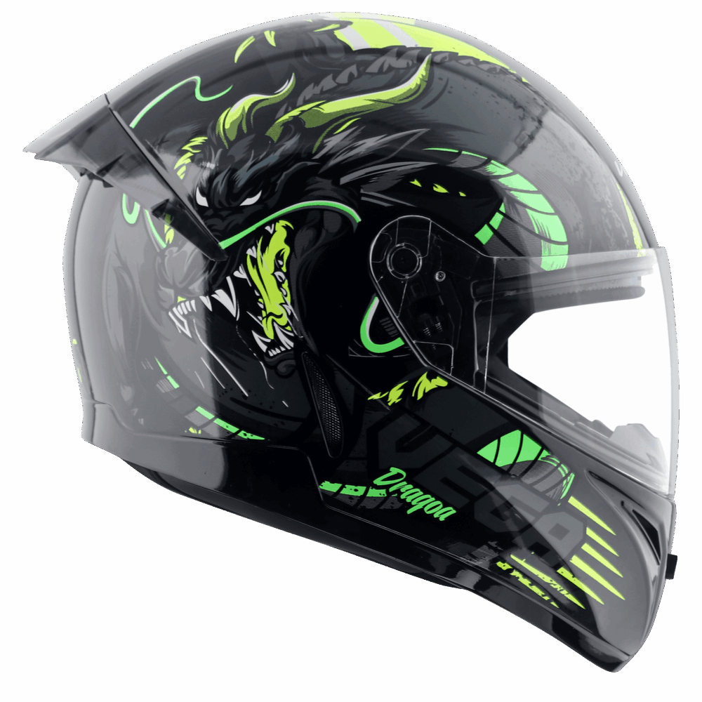 The Voyager Dragao Helmet is a visual statement and a safety essential in one. Adorned with an intricately coiled dragon graphic, this helmet is built for riders who command attention. With ISI certification, superior ventilation, and a comfortable, secure fit, it’s the perfect fusion of protection and personality.