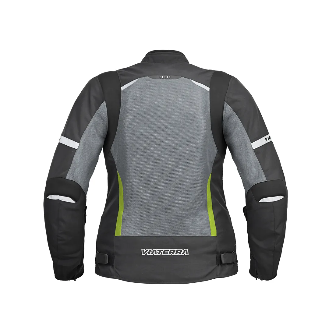 Designed exclusively for women riders, the ViaTerra Ellis Street Mesh Jacket offers ultra-lightweight CE Level 2 protection, ergonomic comfort, and all-day breathability—wrapped in a stylish silhouette built to turn heads on every ride.