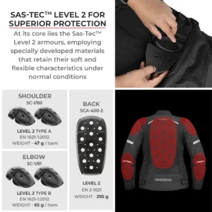 A4: Yes, the included SAS-TEC CE Level 2 armors are removable and can be upgraded if needed.Q5: Is the jacket suitable for hot weather riding?