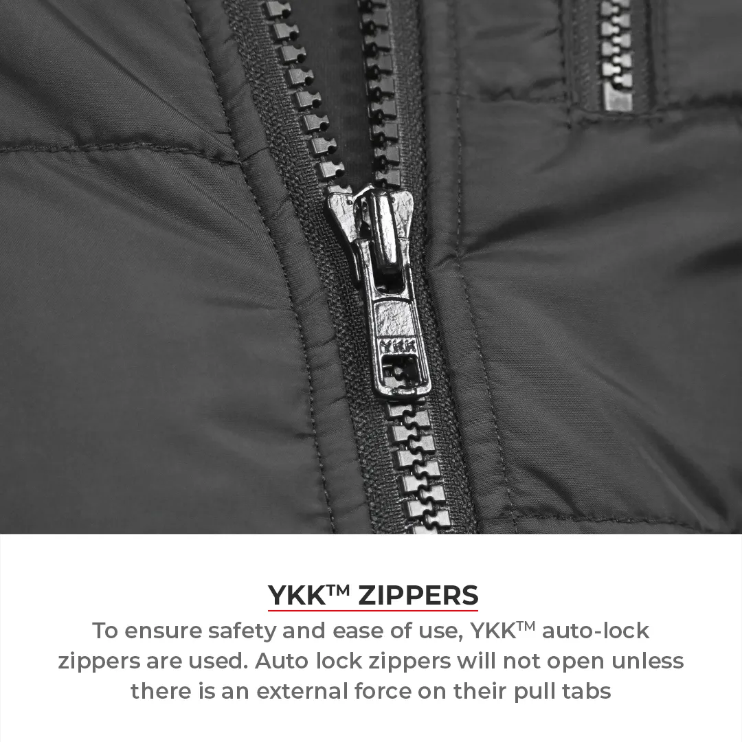 Equipped with YKK Vislon auto-lock zippers, the jacket stays securely fastened, even under pressure – keeping you safe and focused on the road.