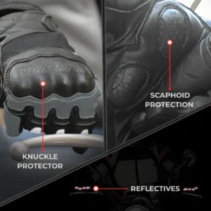 Breathable, CE-certified riding gloves with knuckle protection, palm sliders & touchscreen compatibility.
