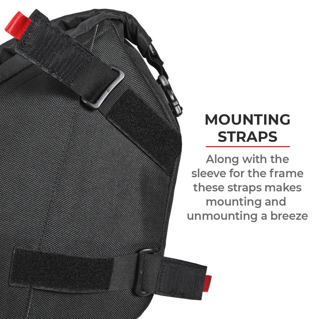 ● Mounts toward the front to maintain motorcycle balance during trail rides.