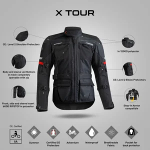 The Acerbis X-Tour Jacket delivers superior protection, weather versatility, and long-ride comfort for touring riders.