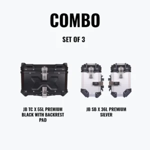 Jb Racing Set Of 3 Combo Of JB TC 45L Silver Premium With Backrest Pad + JB SB X 36L Premium Silver