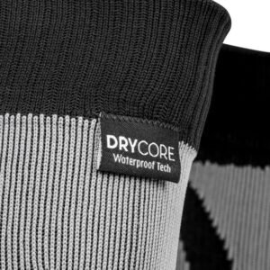 - Drycore Waterproof Technology: A 100% waterproof hydrophobic polyurethane (PU) membrane sandwiched between the inner and the outer layers keeps water out. Rated for water resistance of >5,000mm (Hydrostatic Head Test).