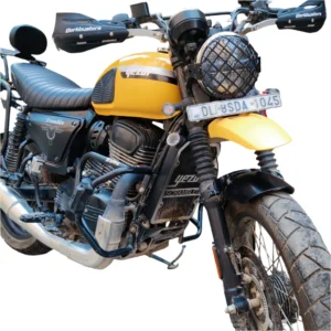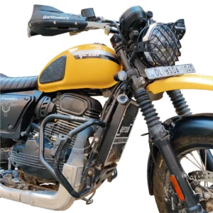 Yes, it fits Jawa 42 Bobber T2, Jawa 42, Yezdi Roadster, and Yezdi Scrambler without complex modifications.Q2: What material is the crash guard made of?